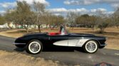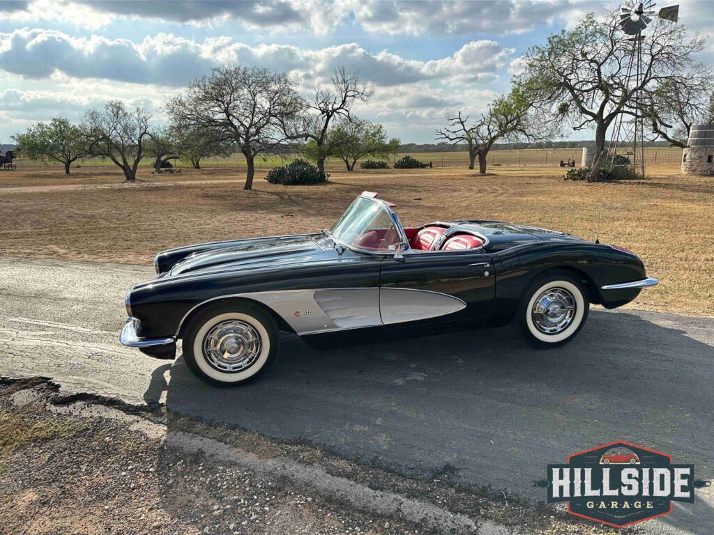 A stunning 1959 Corvette with a 283ci V8, dual 4bbl carbs, 4-speed manual, red interior, and wide whitewall tires. A beautiful and iconic first-generation Corvette.