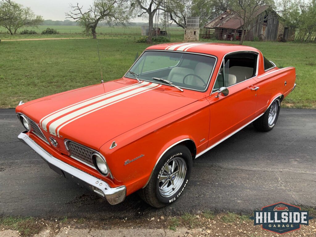 1966 Plymouth Barracuda with a 340 V8, 3×2 barrel carb setup, and automatic transmission. The car features a show-quality chassis and interior.